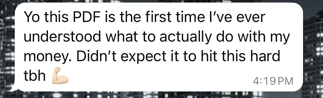 "I used to feel so overwhelmed trying to figure out finances. The apps didn’t help, and nothing ever stuck. This gave me the clarity I needed. It’s not just theory but an actual system. For once, I feel like I’m building something real with my income."